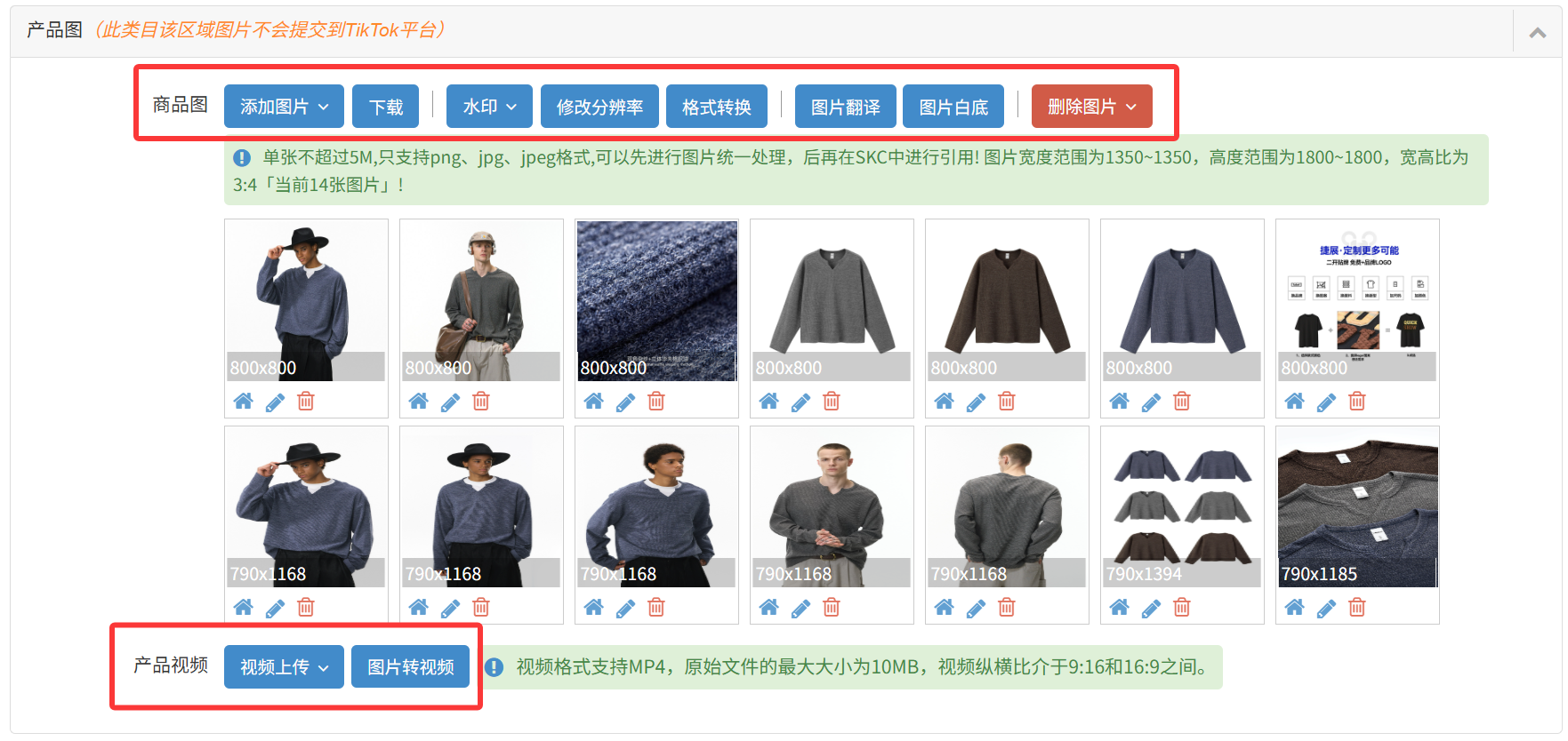 9)产品视频:可通过本地、网络或图片转视频生成图片进行上传;