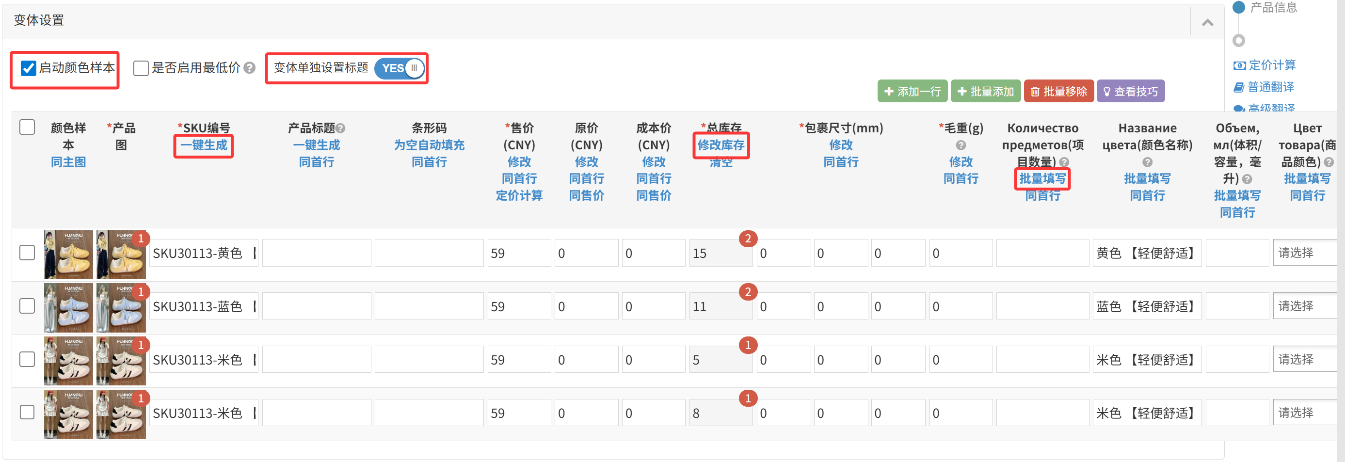🙂多变体-批量刊登