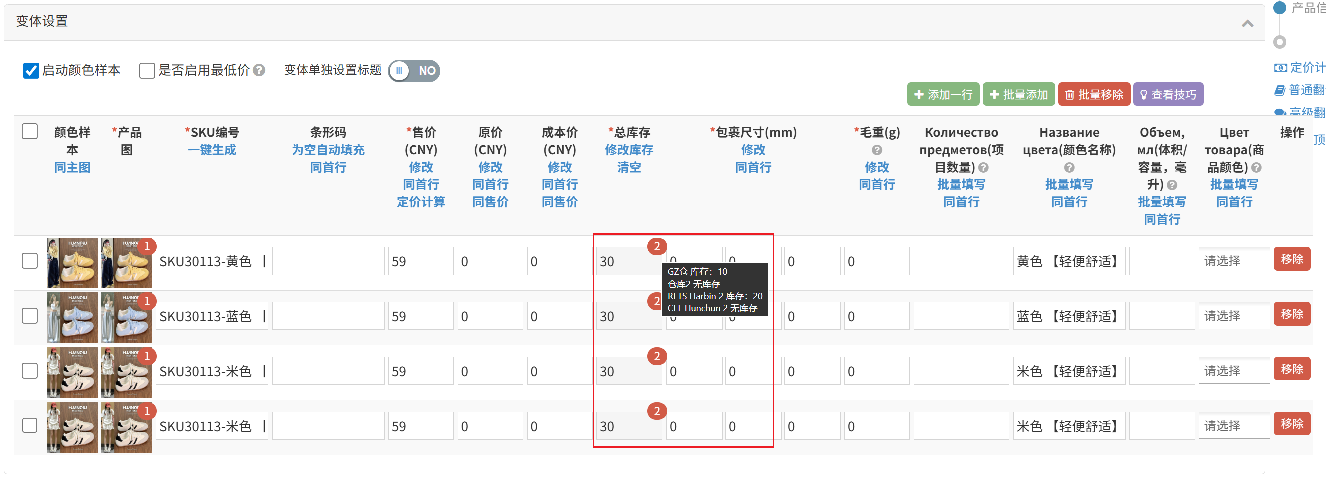 (11)批量移除:可以批量移除不需要的变体SKU;