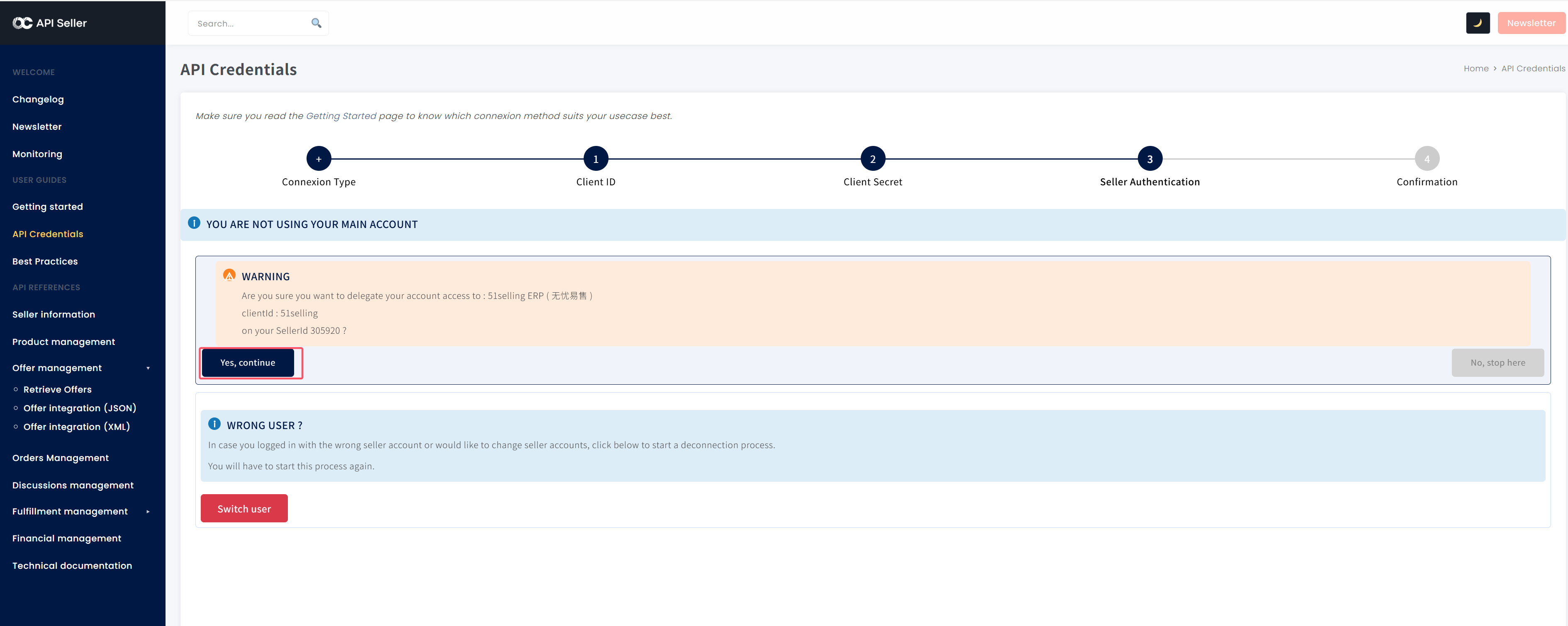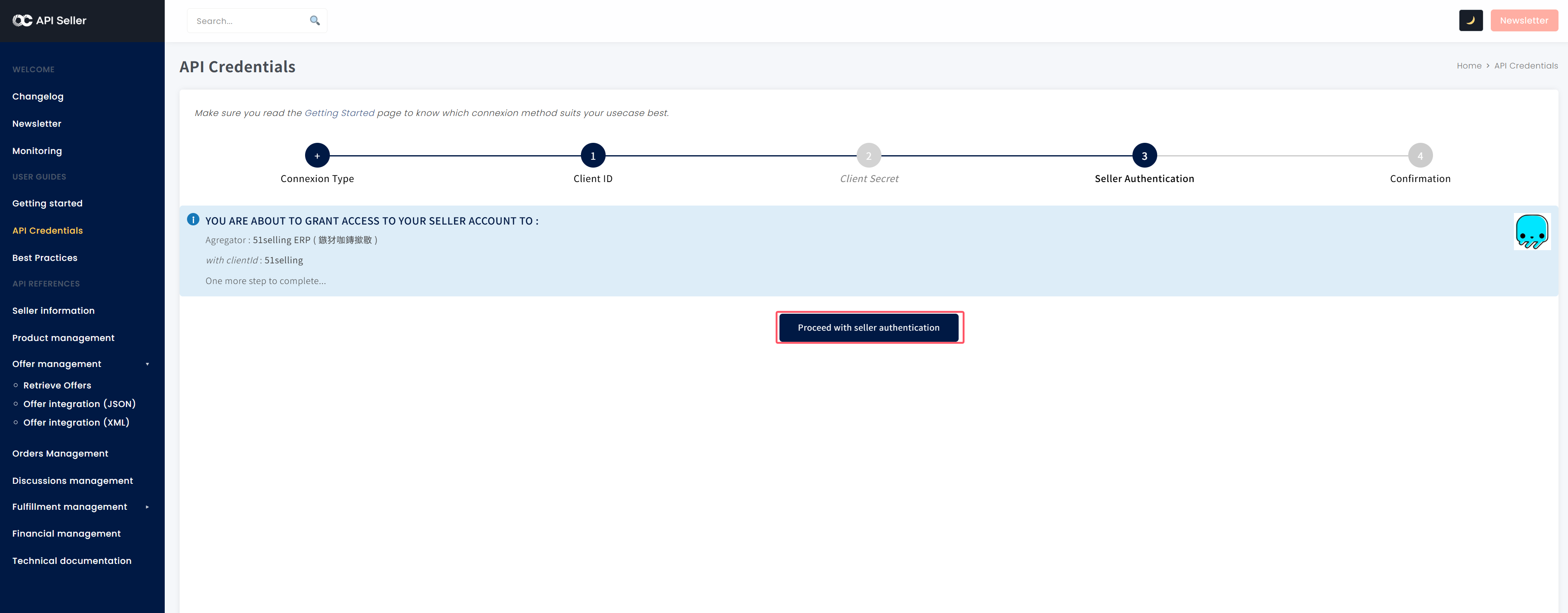 第四步:点击Proceed with seller authentication,跳转授权后点击确认授权