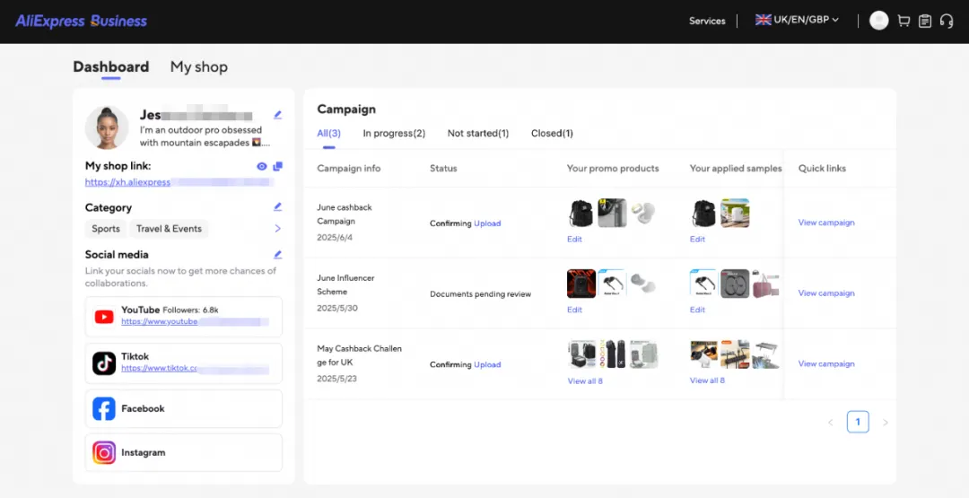 AliExpress Business业务上线“一键分销”新功能,可通过AI能力,围绕社区团长、达人网红、个人站长、中小批发商等多种分销人群和场景,帮您精准触达TikTok、Instagram、YouTube等各式网站和社区的潜在消费者,为商品打通多个销路,获得更多爆单机会。