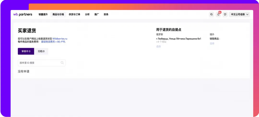 建议您于后台“买家退货”板块中,为从俄罗斯合作仓发出的订单至少挑选 5 个自提点,以确保顺利接收退回的商品。