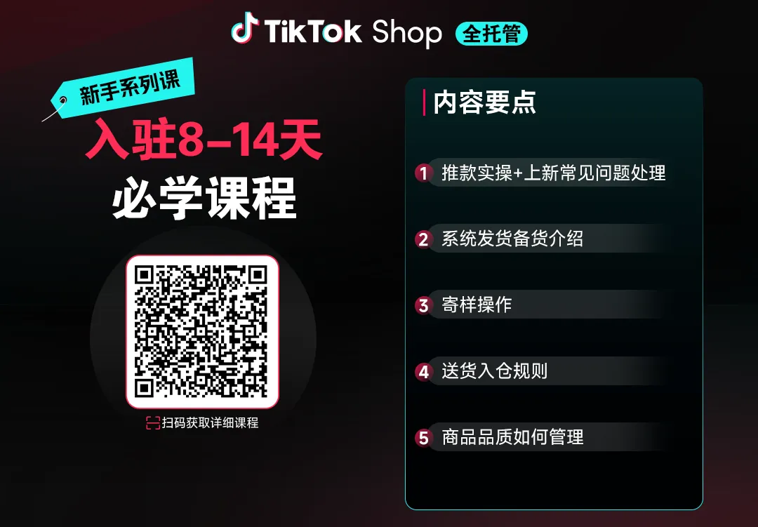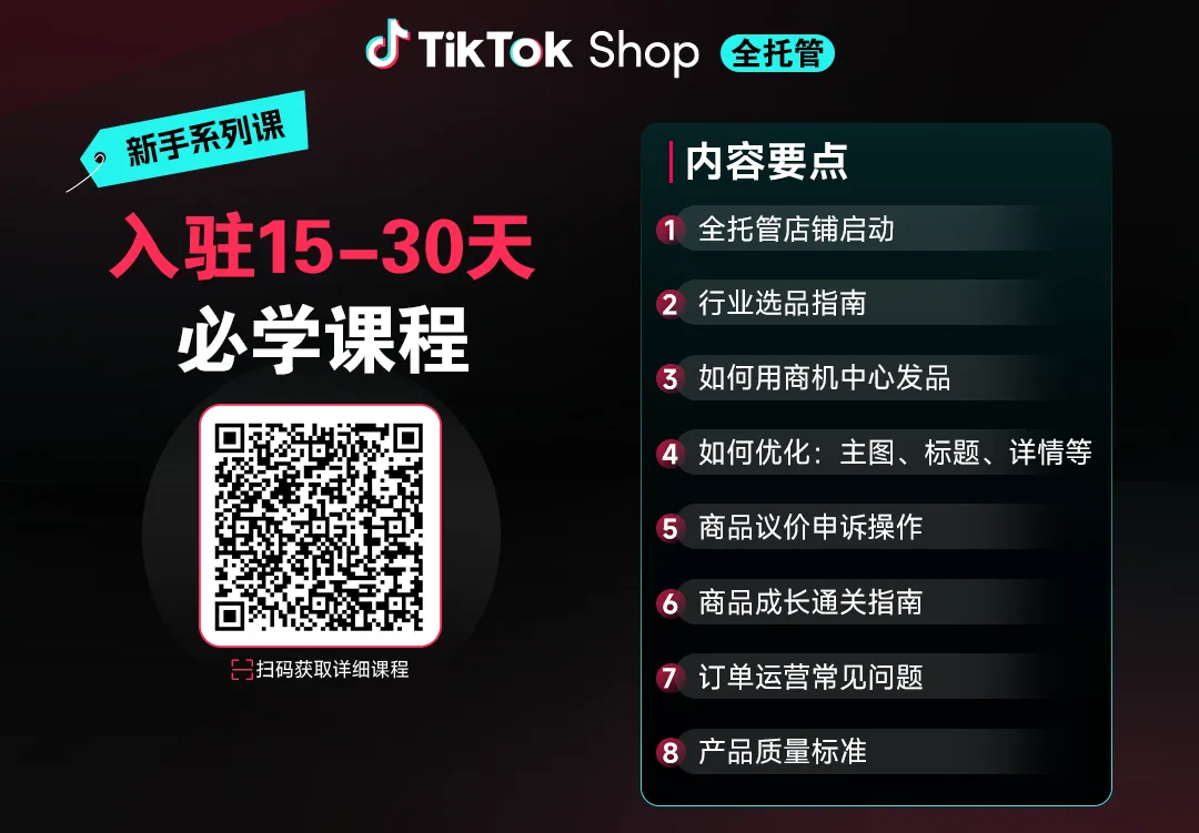 扫描下方二维码,解锁“全托管商家入驻30天必做指南”和“全托管模式商家经营方法论”。该内容也会同步上线「TikTok Shop跨境电商」菜单栏,助力新手商家快速起步,掌握爆单技能!