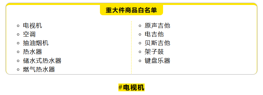 电子类目当前开放入仓的重大件产品主要集中在家电和乐器: