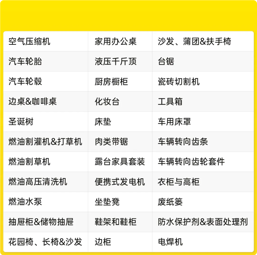 美客多3大类目均有开放入仓的重大件商品,我们一一来看: