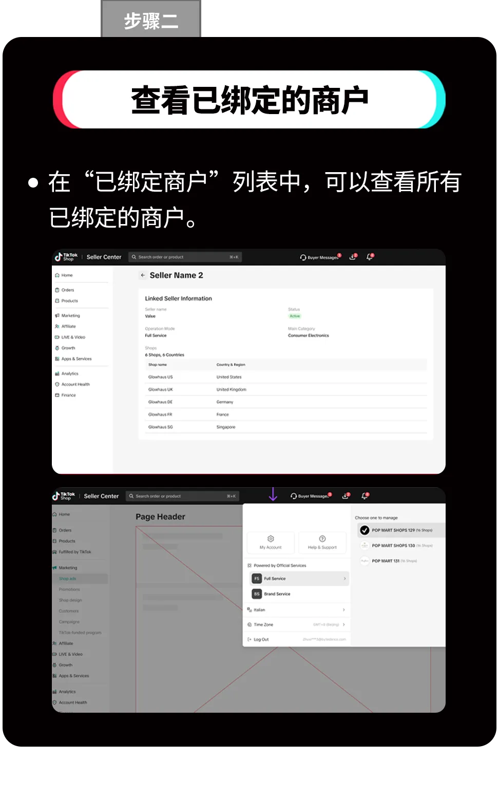 请您先在商家中心完成多店铺的账号绑定(操作指引详见「全球多店绑定」)。